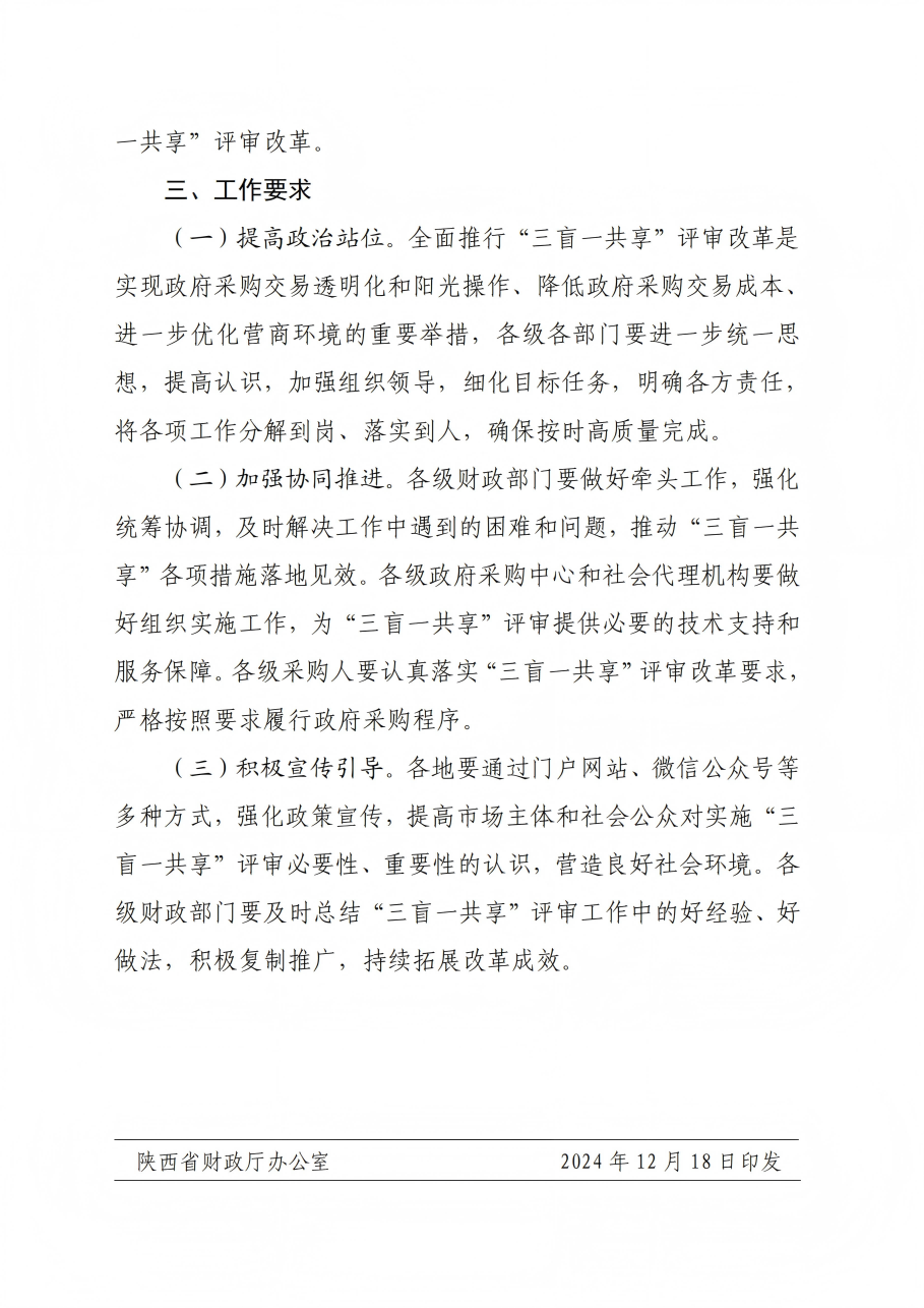 關于印發(fā)《陜西省政府采購領域“三盲一共享”評審實施方案》的通知